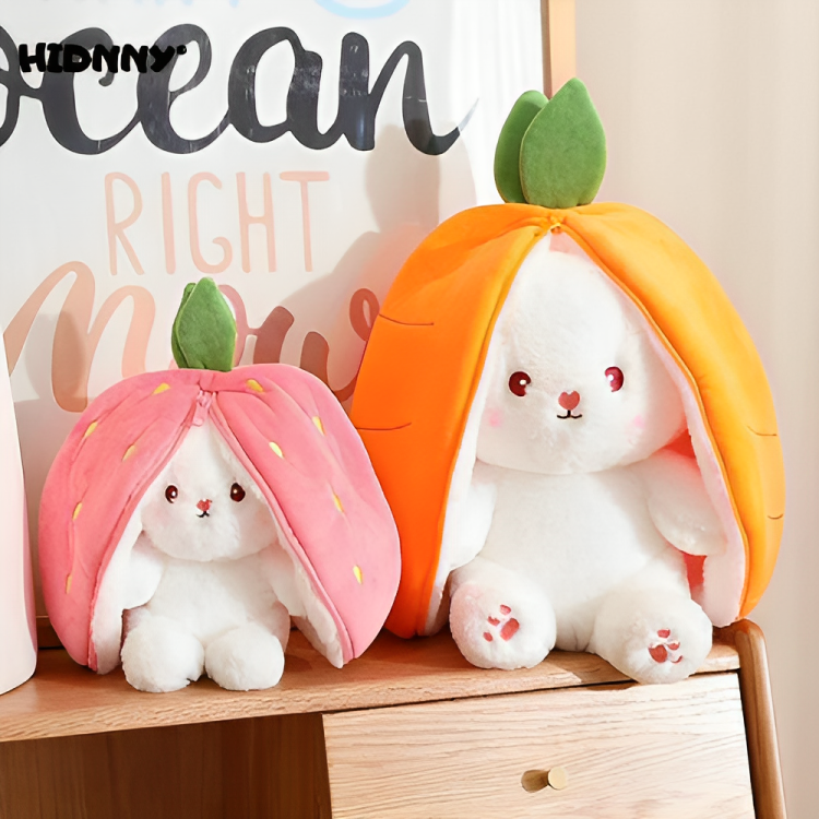 🥕Fluffy Bunny can turn into a plush strawberry or carrot.
